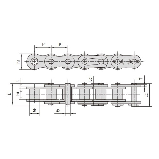техническа таблица за верига с къс стъпка, никелирана ролка, устойчива на корозия