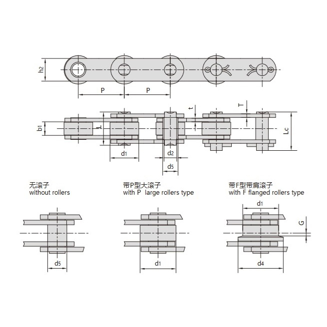 - Тип ZE:Конвейерна верига с големи ролки и високи верижни плочи